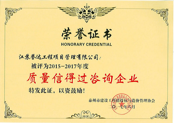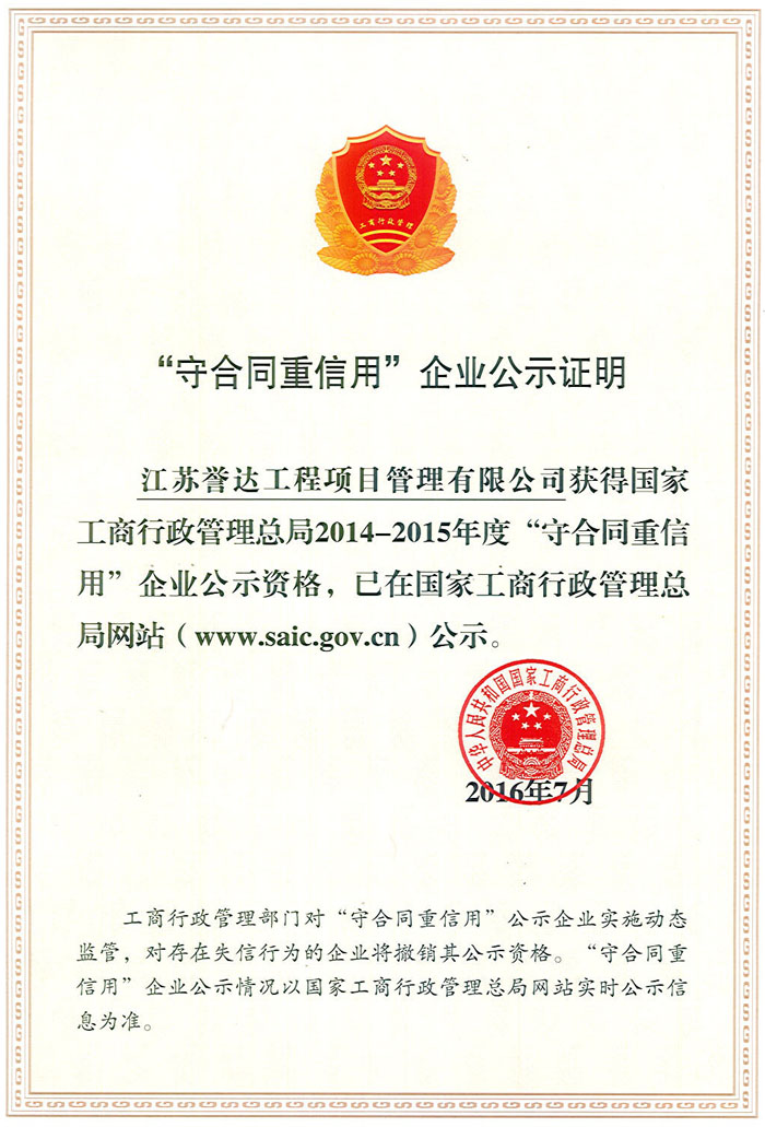 我公司成立于1996年,注冊資金6000萬元,公司有關資質(zhì)為:工程造價咨詢甲級,房屋建筑工程監(jiān)理甲級,市政公用工程監(jiān)理甲級,人防工程監(jiān)理甲級,電力工程監(jiān)理乙級,水利水電工程監(jiān)理乙級,公路工程監(jiān)理乙級,文物保護監(jiān)理乙級,招標代理資質(zhì)、政府采購代理資質(zhì),工程咨詢資質(zhì)。公司于1999年被江蘇省建設廳命名為省級先進監(jiān)理企業(yè)、2005年及2009年獲江蘇省建設廳優(yōu)秀監(jiān)理企業(yè),2008年獲江蘇省監(jiān)理協(xié)會“建設監(jiān)理發(fā)展二十周年工程監(jiān)理先進企業(yè)”,2009年及2014年3月獲泰州市建設局“建設工程監(jiān)理工作先進單位”。2001年至2012年連續(xù)十二年獲泰州市重合同守信用企業(yè)。 [ 查看詳情 ]